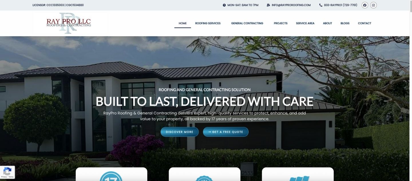 RayPro, based in Delray Beach and Wellington, FL, aimed to showcase their comprehensive services—spanning roofing, general contracting, and insulation—while building trust and easing conversion across residential and commercial sectors.